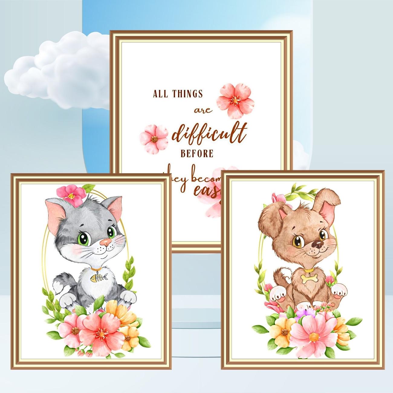 Our cat and dog prints will add an instant touch of personality to any room. Our collection of adorable animal wall décor features baby animals in various poses and activities.